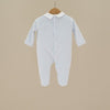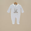 A soft blue essential with elevated details, this Blue Teddy Footie features a crisp white collar and an embroidered teddy bear on the front. Crafted in Italy with incredible attention to quality, it’s the perfect mix of classic and cozy.