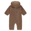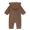 This snuggly one-piece is pure teddy bear perfection. Made from ultra-soft sherpa fleece, it features an easy front zipper for quick changes and an attached hood with little bear ears for extra sweetness. Designed for comfort and warmth, it’s the ideal piece for chilly walks, stroller rides, or cozy days at home.