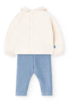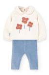 Creamy ivory with ruffled collar detail and embroidered orange flowers makes this top extra charming. Paired with soft blue leggings, it’s an easy-to-wear set with plenty of style.