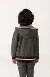 The zip-up hoodie features bold stripe trim and a "Ski" patch for a fun, athletic vibe.