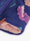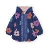 A cozy sherpa jacket in rich navy, covered with colorful flower appliqués. The zip front and hood keep little ones snug while looking stylish.