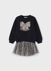 Black Sweatshirt : Cozy and soft with ribbed cuffs and hem, featuring a statement leopard-print tulle bow at the chest for extra flair.