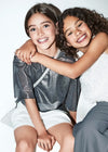 Let the layering do the talking! This 2-piece shimmer set includes a cropped cami and a sheer, shimmery top that brings the glam without the fuss. Perfect for fashion-forward kiddos who love a little sparkle in their step.