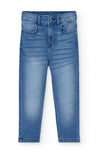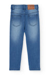 Classic meets casual in this set—an argyle patterned sweater in autumn shades of mustard, rust, and grey, paired with timeless blue jeans.