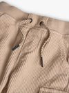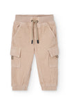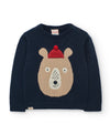 This two-piece outfit is a cozy blend of fun and function. The navy knit sweater showcases a friendly bear wearing a red knit hat topped with a pom-pom, adding a playful touch. Easy shoulder buttons make changes simple, while the beige corduroy jogger pants bring comfort with cargo pockets, an adjustable drawstring waist, and elastic cuffs.
