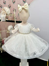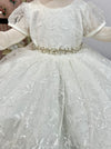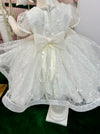 Rhinestone belted diamond white tutu dress with sequined floral lace. (Headband not included*)