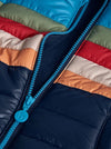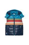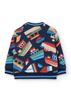 Sail into style with this nautical-inspired three-piece outfit. The set includes a navy jogger with a comfy elastic waistband and drawstring detail, a colorful boat-print sweatshirt full of playful charm, and a striped puffer vest with a detachable hood for extra warmth. Designed for comfort and layering, this set is perfect for active days and cool-weather outings.