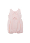 The sleeveless silhouette keeps baby cool and comfortable, while the gently gathered waist creates a classic bubble shape. The standout detail is the open back accented with two soft bow accents, adding just the right touch of charm. Elastic leg openings ensure an easy, comfy fit for wiggling, sitting, and those first little scoots.