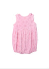 Designed with a gently gathered waist and elastic leg openings, it creates that classic bubble silhouette that’s both adorable and practical. The shoulder tie details add a delicate touch and allow for an adjustable fit as she grows.